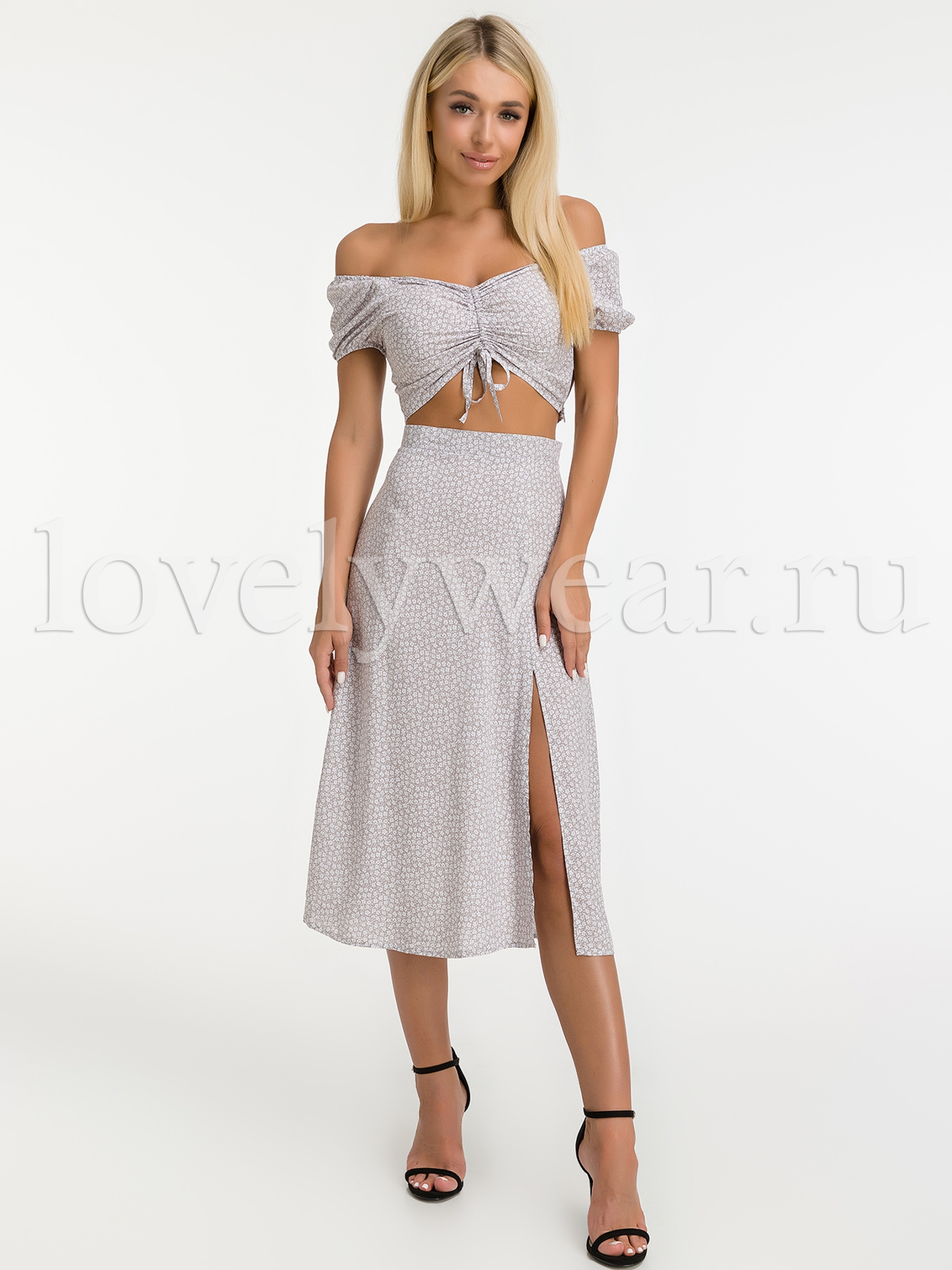 Невероятно легкий и нежный костюм топ и юбка в цветочек — идеальный вариант на жаркое лето! Юбка и топ на молнии. На топе также можно затянуть завязку спереди так, как Вам удобно.