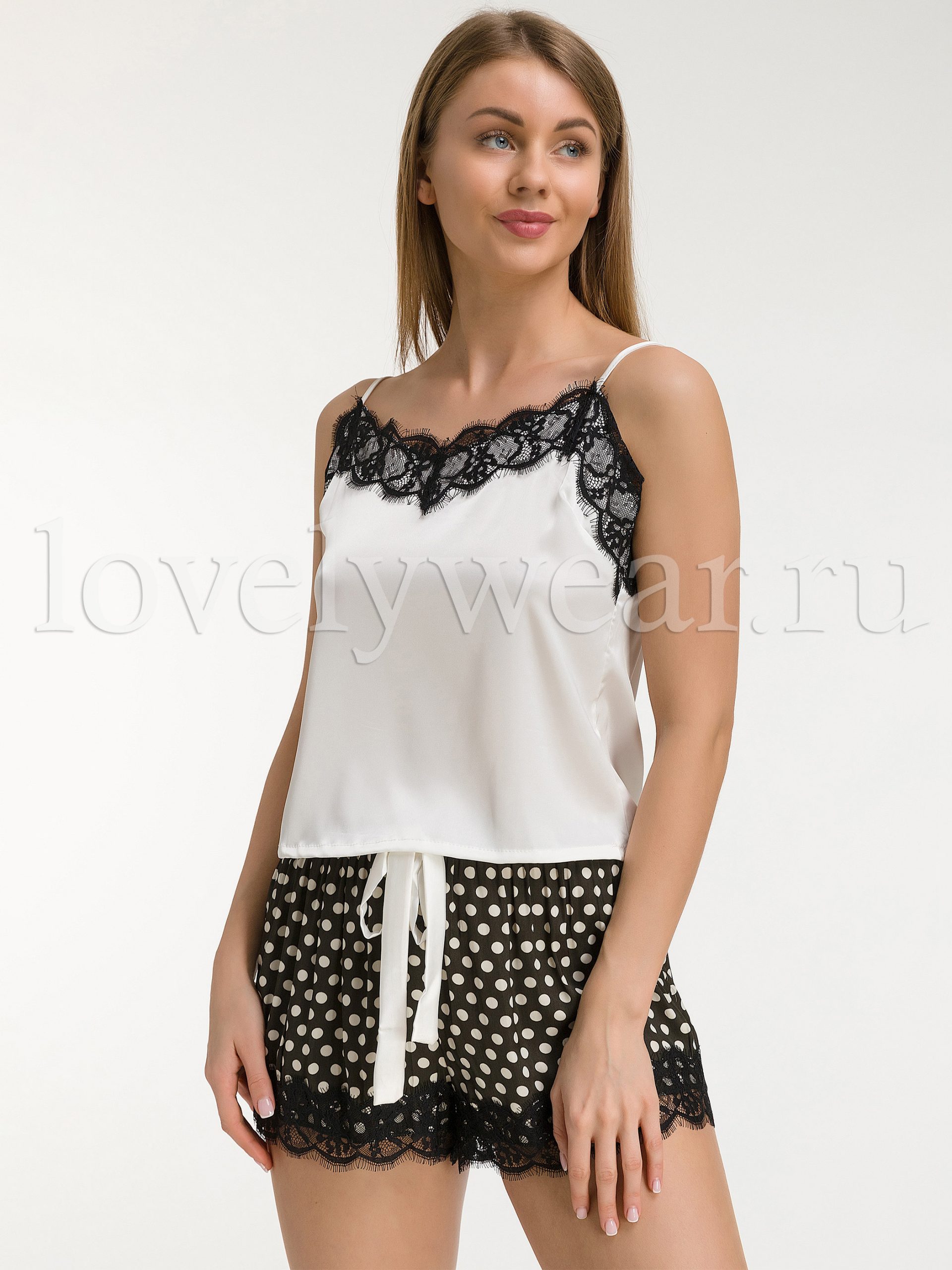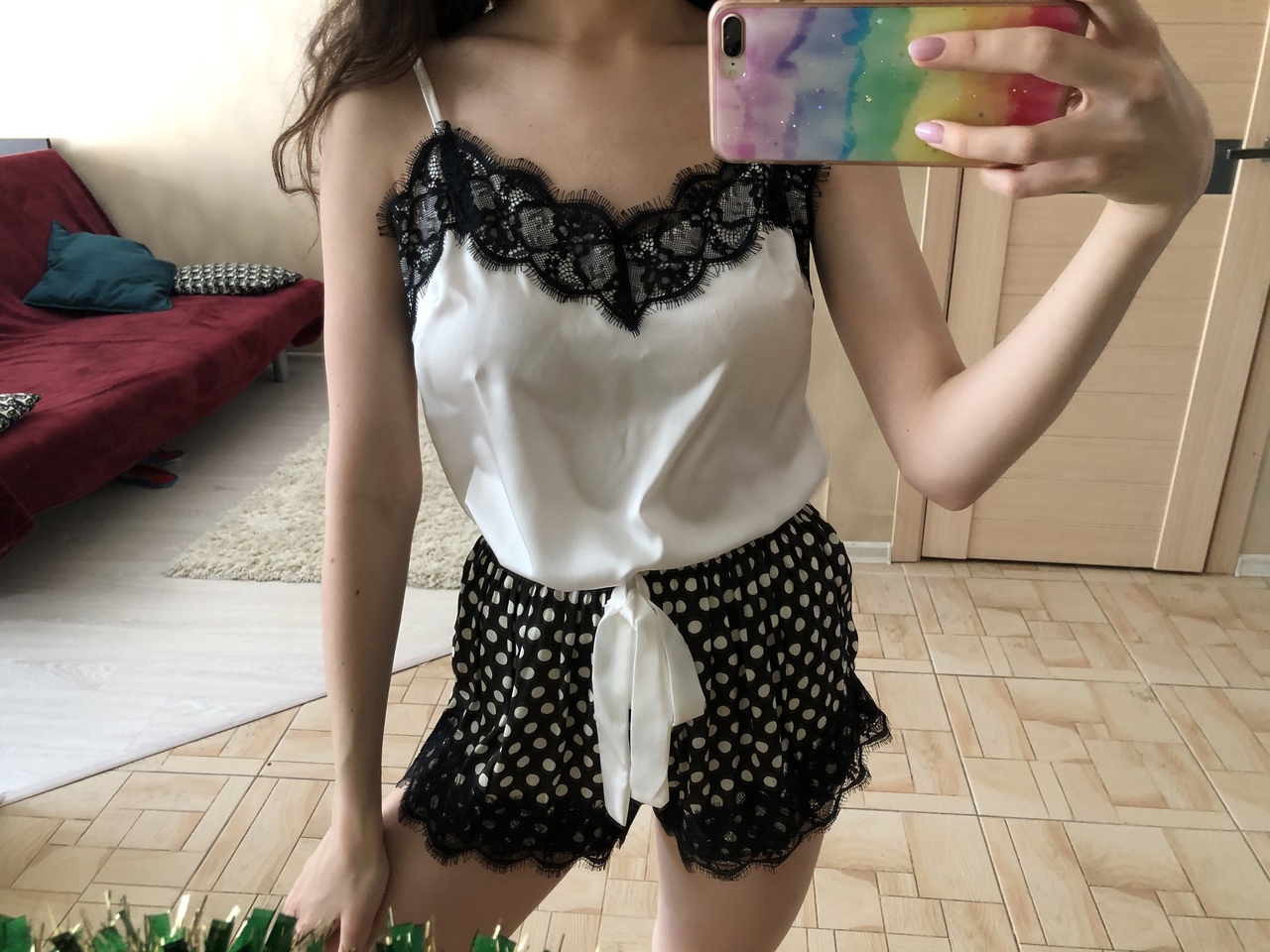 «Julietta»– крайне манящий комплект, состоящий из шортиков и маечки с кружевом. Комплект насквозь пропитан энергией женственности, притягательности и нежности. В такой одежде любая женщина способна свести с ума мужчину, который находится рядом. Если вы уже давно вместе, то он обязательно влюбится в вас снова словно Ромео! Комплект изготовлен из очень качественного, мягкого и приятного к телу полиэстера, близкого по ощущениям к настоящему шёлку.
